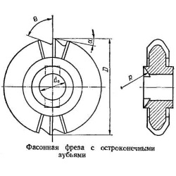 Фасонные фрезы с острозаточенными зубьями, наоборот, затачивают по задней поверхности зубьев. Такой инструмент обеспечивает более чистую поверхность и устойчив к износу. Но для производства и переточки остроконечных фасонных фрез необходимы копировальные устройства и специальные приспособления, которые позволяют получить точный контур режущих кромок. Именно по этой причини применение таких фрез целесообразно при массовом производстве.