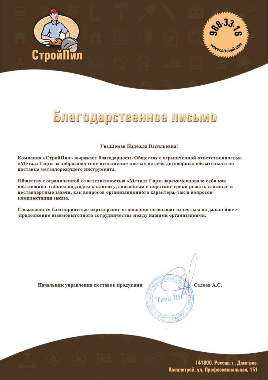 Главная / Отзывы о нас / Благодарность от "СтройПил" Поступления на склад, акции, распродажи! Комплексные поставки инструмента мелким, крупным оптом от 5000 руб для физических и юридических лиц из Санкт-Петербурга по России, в Беларусь, Казахстан в кратчайшие сроки. Звоните или отправьте заявку прямо сейчас! Благодарность от "СтройПил" Скачать прайс Средства индивидуальной защиты Дезинфицирующие средства Алмазный инструмент Деревообрабатывающий инструмент Измерительный инструмент Камнеобрабатывающий инструмент Металлорежущий инструмент Метчики и плашки профессиональные Оборудование и спецодежда Оснастка и приспособления Пневматический инструмент Рекомендуем Сверла Слесарно-монтажный инструмент Строительный инструмент Фрезы по металлу Хозяйственный инструмент Шлифовальный инструмент Электроинструменты